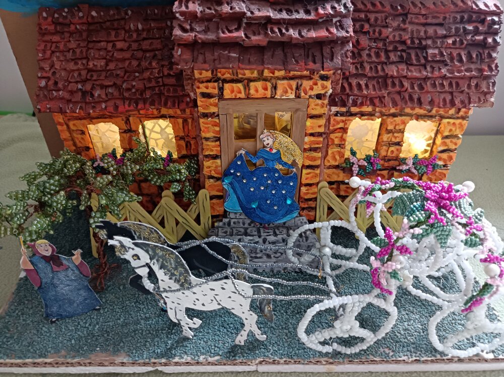 Mese jelenet. Hamupipőke, amint a bálba indul a tökhintóval. Ez is még csak félkész állapotban van.